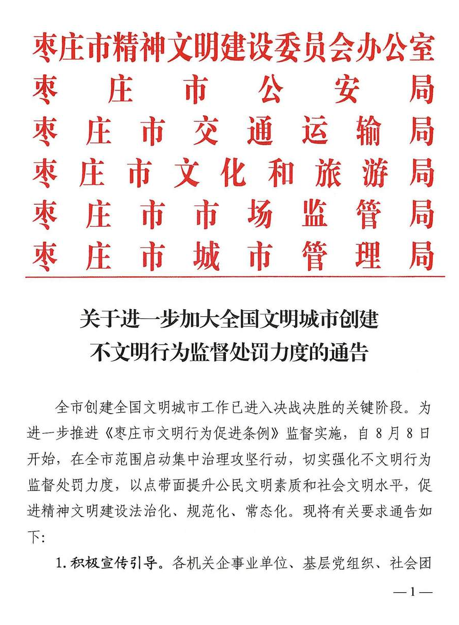 关于进一步加大全国文明城市创建 不文明行为监督处罚力度的通告
